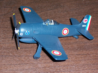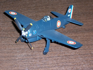 Originally completed back in June of 2010, this was for a club challenge to build something related to the Vietnam War.  Since I don’t do modern(-ish) jets, I decided to go back to the ’50’s and make something I’ve always wanted on my shelf:  A French Air Force F8F-1 Bearcat.