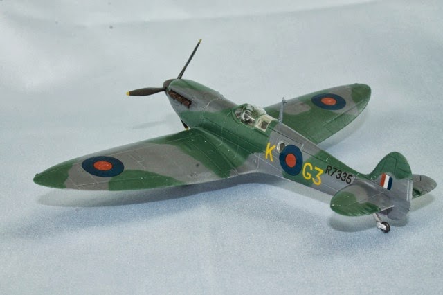R7335, G3.K, was assigned to 718 Naval Air Squadron, FAA, NAS Henstridge in 1943. It carried a dark camouflage scheme, considered to most likely be the low level scheme of Extra Dark Sea Green and Extra Dark Sea Grey with PRU Mauve undersides. Given the low contrast of the upper surfaces, and that it was assigned to a NAS it could have been Dark Slate Grey instead of Extra Dark Sea Green, but since the under surface is dark I decided to paint it in the Low Level Scheme. It’s also a very unique looking scheme on my shelf.