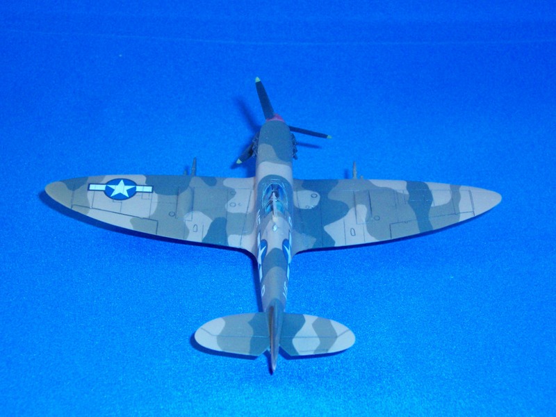 Spitfire Mk Vc, VF-R, 5th Fighter Squadron, 52nd Fighter Group, USAAF, Italy, February 1944. Flown by Lt John Anderson who achieved 2 kills over Me-109’s on 15th February. The aircraft has a non-standard camouflage scheme of a dark green, brown and sand to a non-standard pattern.