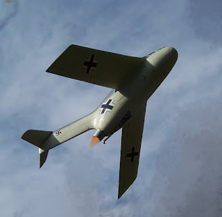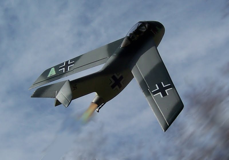 The TA-183T or träger (carrier) version used an uprated BMW-004 engine providing 8,000 lbs static thrust and included a primitive first generation afterburner or reheat capability that could boost thrust to 10,500 lbs for short periods. Armament was the standard 30mm Mk108 cannon in 4 locations; 4 underwing hard points could carrier either fuel tanks, bombs, or the latest air-air unguided rockets. Range was only 200 NM but with all four external stations carrying drop tanks combat radius could be extended to 500 NM, 650 for CAP missions and ferry range was as far as 1,900 NM. Speed was over 550 mph and in a dive could easily exceed Mach 1.0 in a clean configuration.