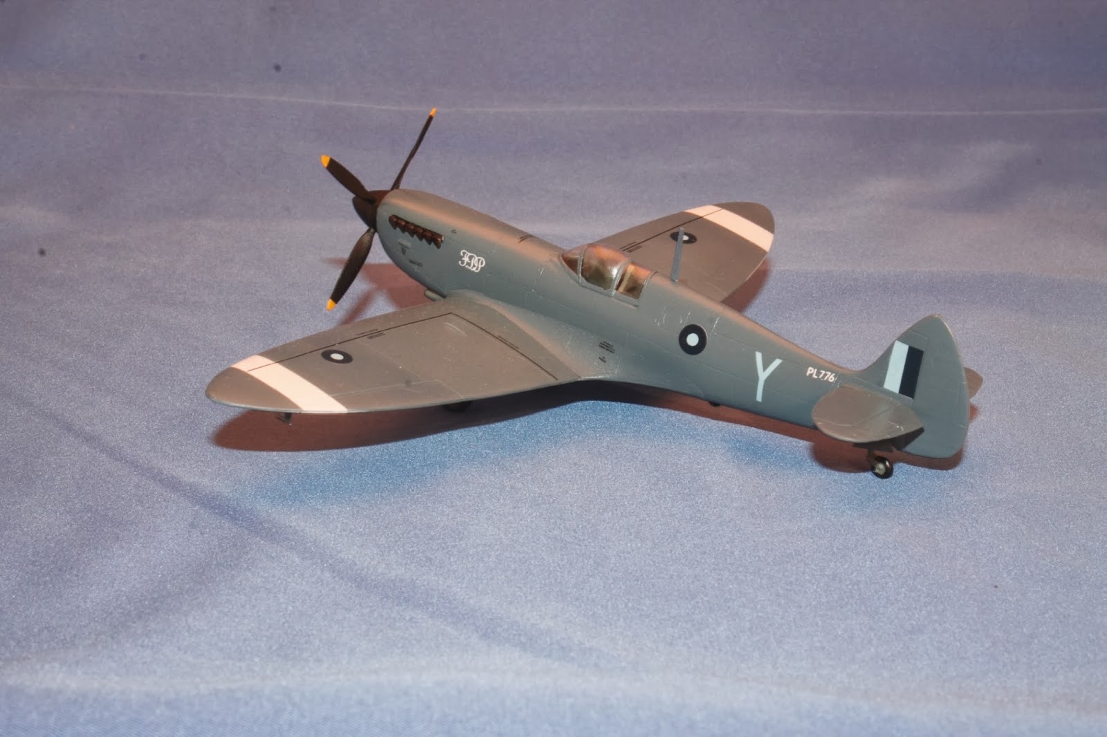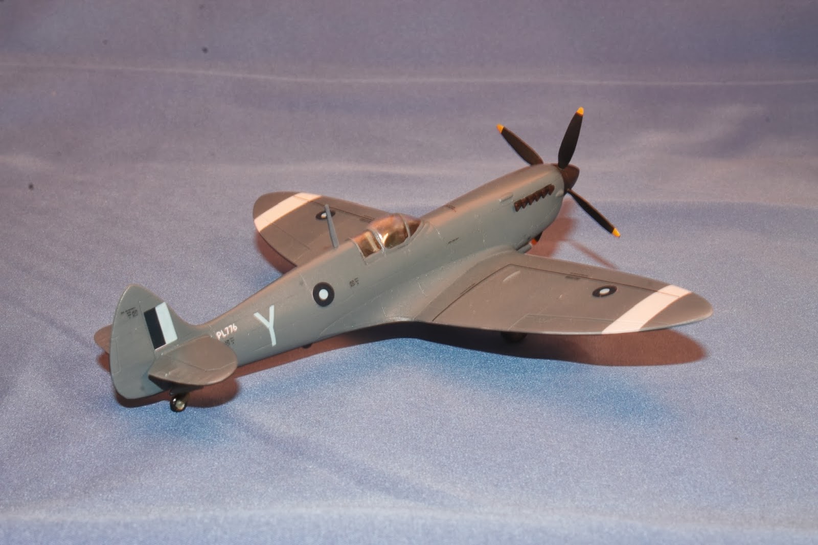 The model was painted PRU Blue overall, using Model Master PRU Blue enamel. The white SEAC identification bars were painted, although they came on the decal sheet.
