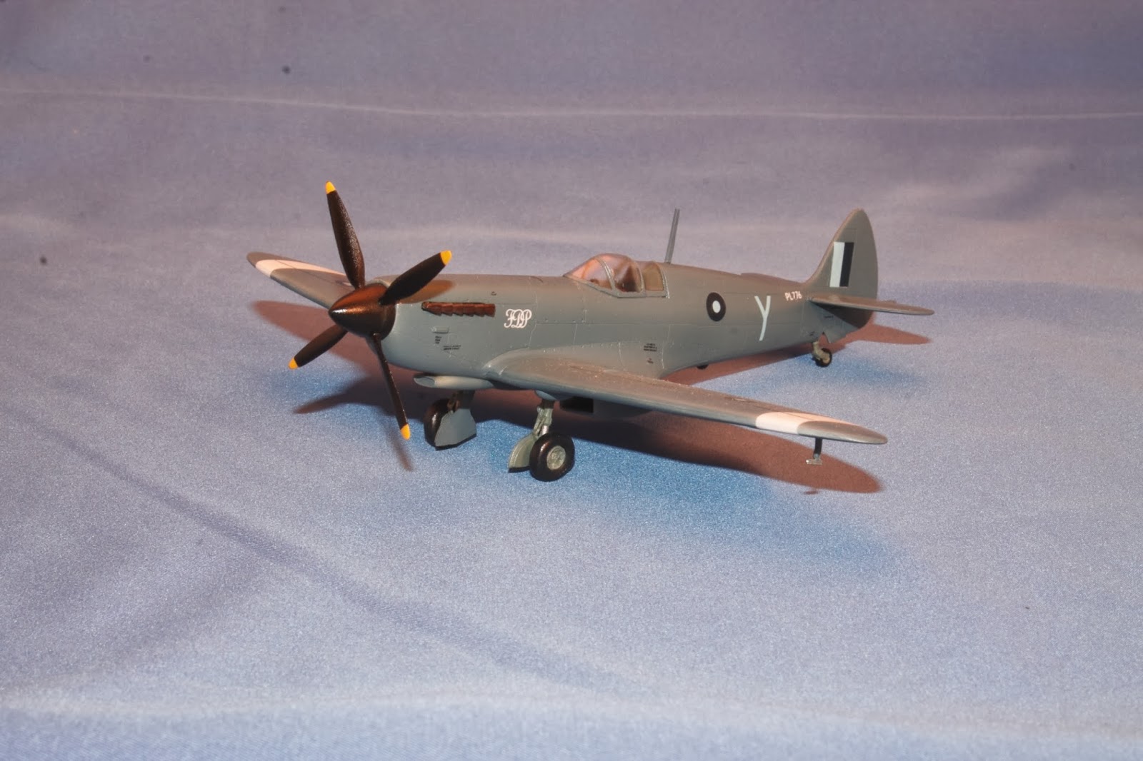 The model was painted PRU Blue overall, using Model Master PRU Blue enamel.  The white SEAC identification bars were painted, although they came on the decal sheet.