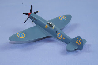 “Spitfire The History” lists 31040 as originally procured as PM499. This was part of an original contract order for the Mk VIII, which was modified for PR XI and PR XIX. There is no history listed for PM499 with the RAF, one web source indicates all the Swedish Spitfires were from Maintenance Unit stocks, having never been assigned to fighting units.