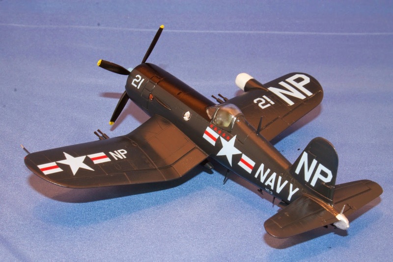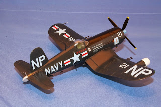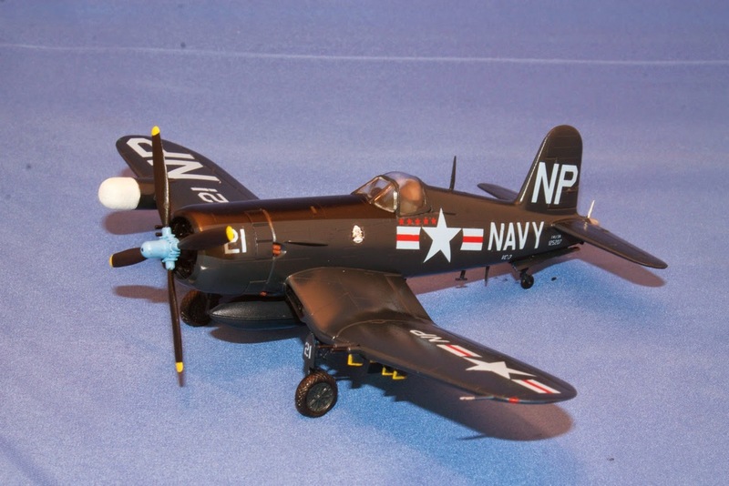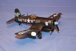 Paint is the same as the other Corsairs — overall Glossy Sea Blue, by Aeromaster (enamel). The anti-glare panel is simply a flat black, probably Tamiya. Sealed with Future (Kleer) before I put the decals on.