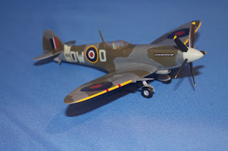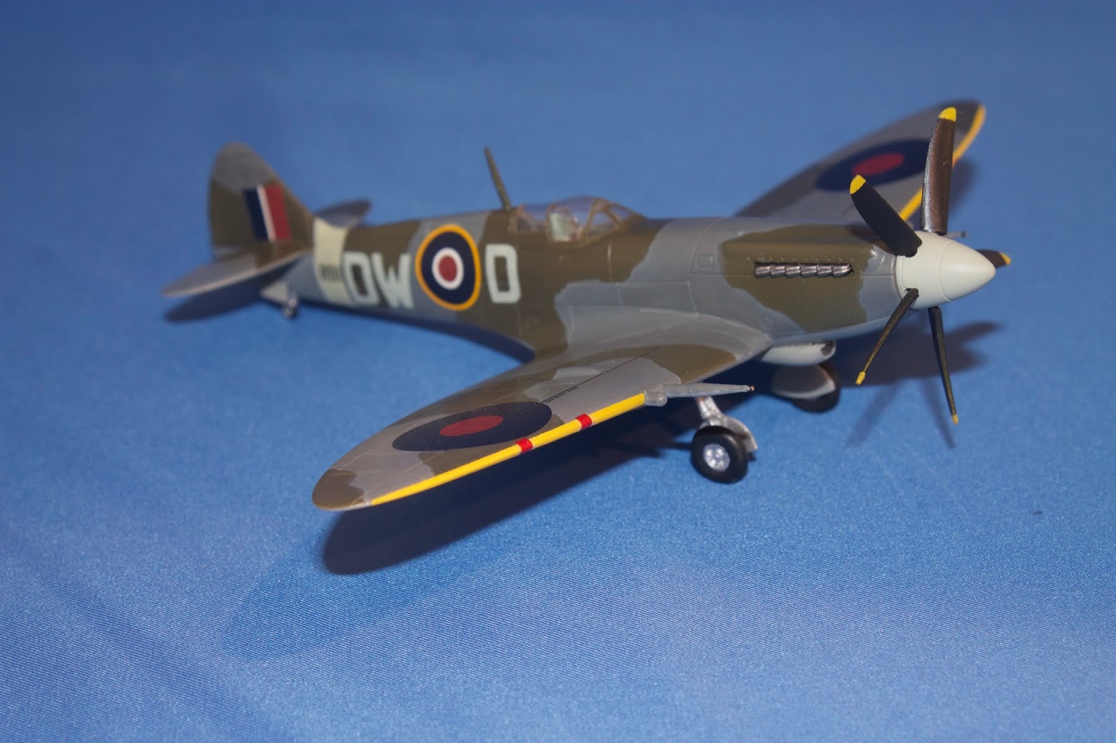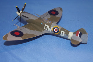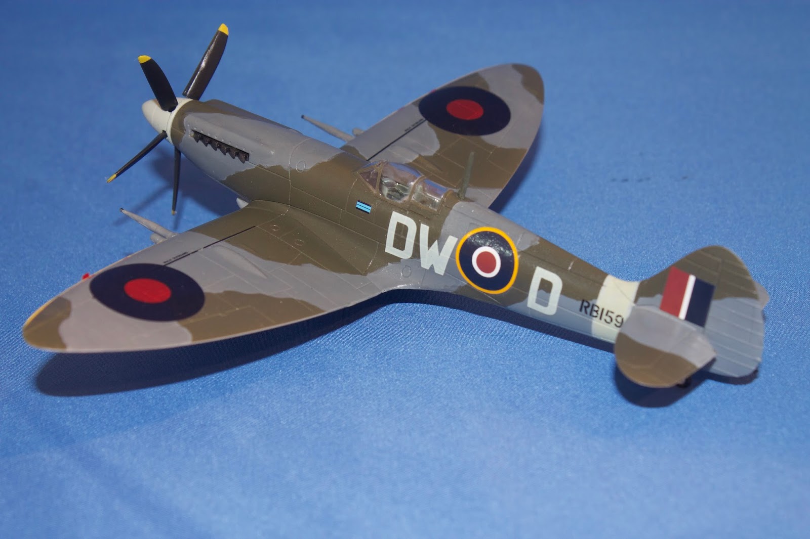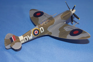 I pieced this together from 3 kits, actually: The wings, main landing gear, canopy, and cockpit came from the Airfix IX kit. The fuselage, prop, carb intake, tail wheel, tailplanes, and radiators came from the Airfix XIX kit. There was very little fit issues, the lower wings-to-fuselage joint required a bit of added plastic as the XIX fuselage insert is shorter than the IX bit on its wing.